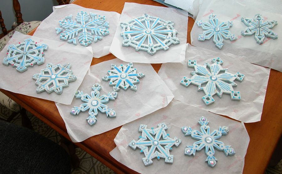Continue pressing each snowflake down |