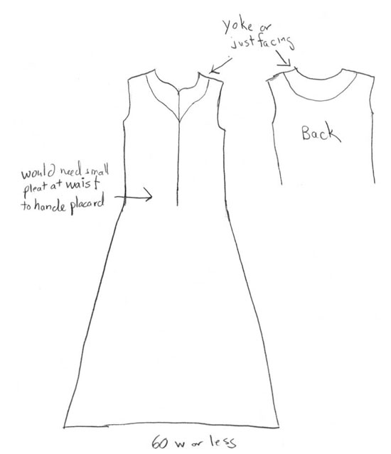 - Sleeveless tunic with basically a sweet-heart neckline or yoke.