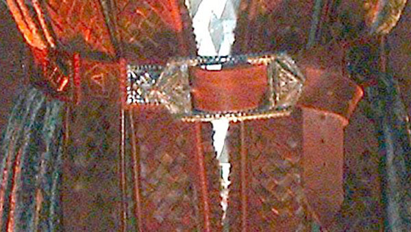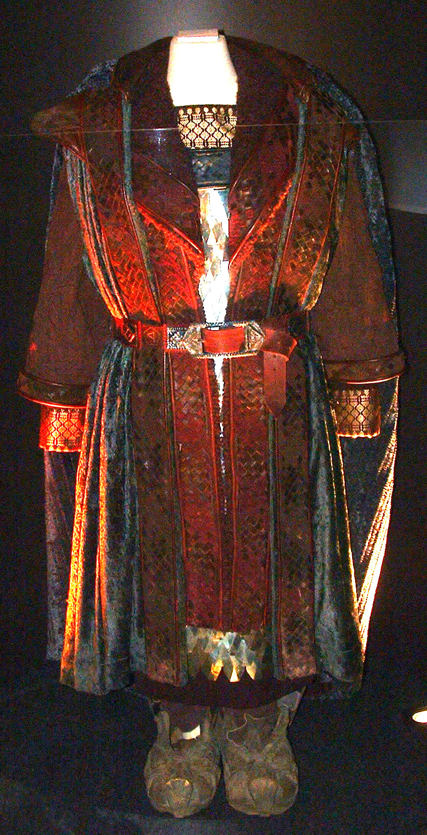 FarinThere is some question in identifying this outfit. The London Exhibit tag said Gimli, however, we at least see major parts of it including the plate maille on the elf Farin during the Council of Elrond scene. If it is Gimli, they they are doing a mix and match with other Dwarf armor and our guess is that it will be used in the wedding scene.