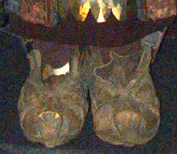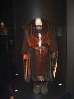 Why we think it doesn't belong to Gimli (and isn't just something from ROTK)(original spec from Judy) Council of Elrond scenes start here: http://www.warofthering.net/quintessential/movieshots_bk2/fotr_b2c02_scene1.htm "Farin" (from the TCG cards). is identified as the dark bearded dwarf next to Gimli. Close up: http://www.warofthering.net/quintessential/decipher_cards/011_farindwarvenemissary.jpg You can see the scale maille and the trim (not good of the trim , but it's there) and that he's got a point of collar sticking out near his head. Below the CU of him, there are other pics of the assorted dwarves at the council that he's in. Also, Farin's has the braided leather trim going all the way down the CF of the tunic/robe, while Gimli just has strips. Can't see Farin's belt buckle terribly well, but it's definitely different from Gimli's. The belt buckle in the exhibit is not gimli's. However, it may be a 3rd. I'm sure it's Farin on display See a closeup of the maille. Gimli is in the middle; Farin is on our right. http://www.warofthering.net/quintessential/decipher_cards/008_dwarvenarmor.jpg