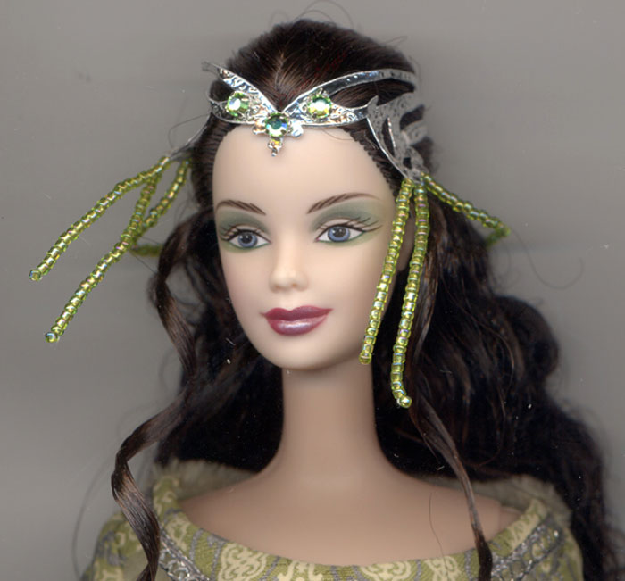 Crown PicsInterestingly Mattel has Photoshoped out Arwen's pointy ear on all packaging. This may effect how the edge of the crown is seen in these pics. Also, the dolls hair is styled to hide the ear. (Wonder what scary thing is suppose to be hidden there?)