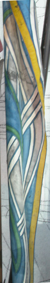 - Blue "waves" with a yellow gold edge, house crest on end