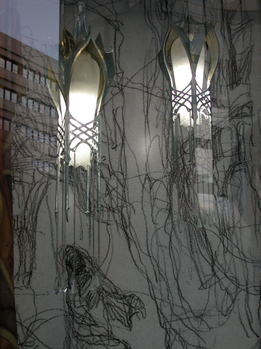 detail against the drawing and with window reflection |