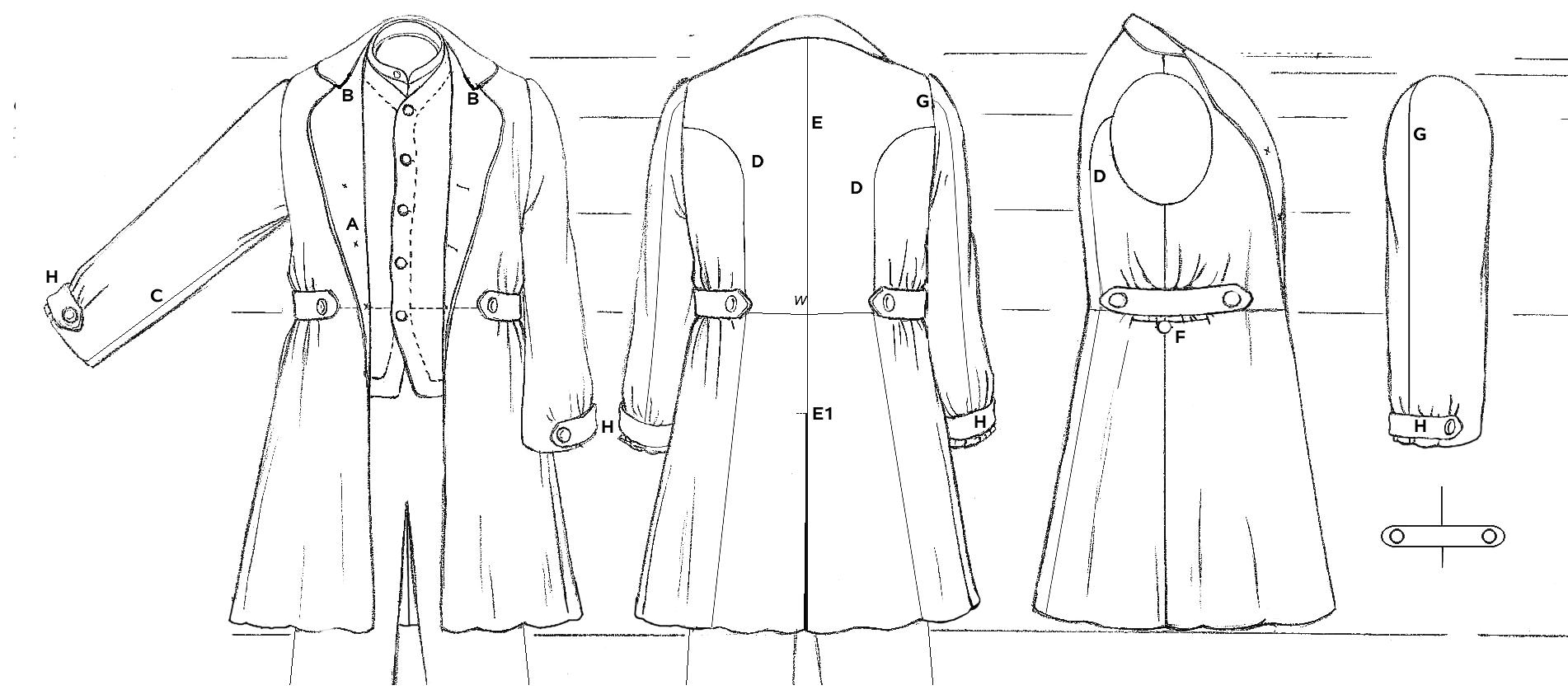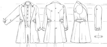 - D cloth covered buttons on breeches (6 on front, 2 on back)