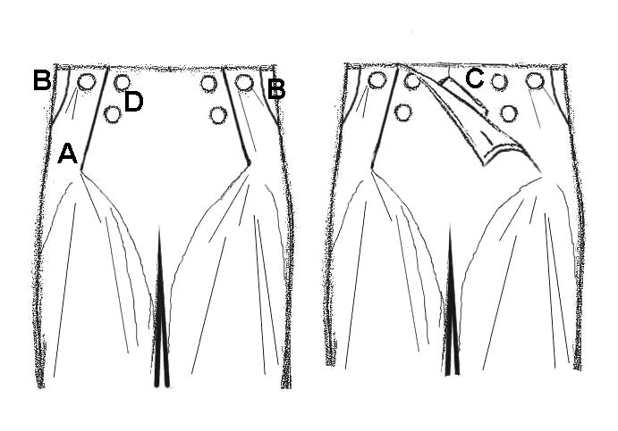 to the suspender end on the back, for comfort and a better fit. (based on a