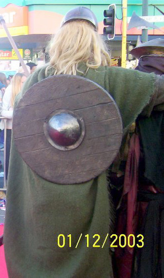 One of the Rohirrim costumes displayed in London came with a round shield. The