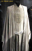 Saruman the WhiteBad guys can wear white. Christopher Lee looks stunning in it. He has a single multi layered costumes. (Very rough, but we have quite a few nice pictures. Just needs organizing and a bit of detail filled in.) Note: on robe color, in person it appears varying shades of cream and off-white. On film the robes show up as dazzling white but with great dept of detail.