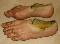 Samples of Hobbit FeetThe latex feet that were created for the movie shoot have a very short life. The latex breaks down after a while and there's nothing left but a smelly mess. However, we've got some shots of the feet off before the disintegration process hit. Photo Index