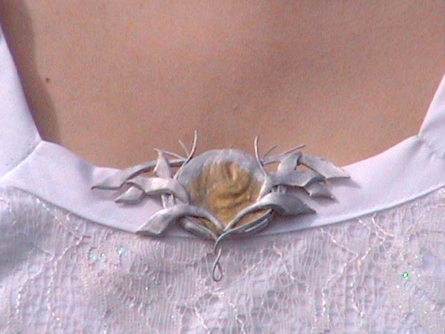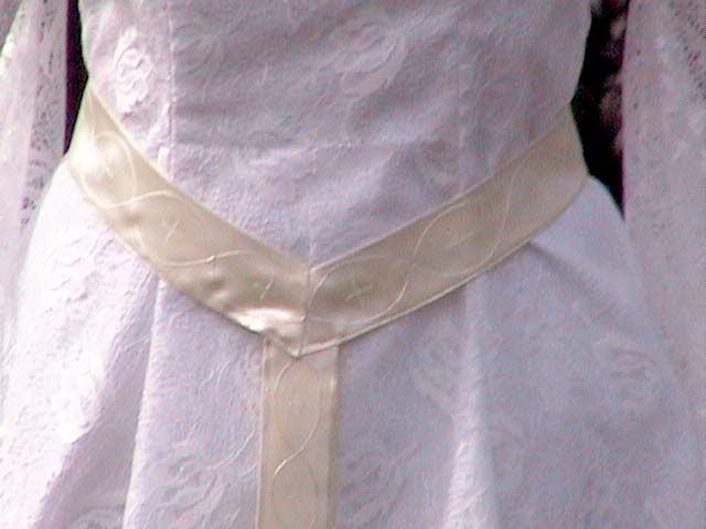 on the belt. The belt is made from a very light yellow satin. I sewed 4