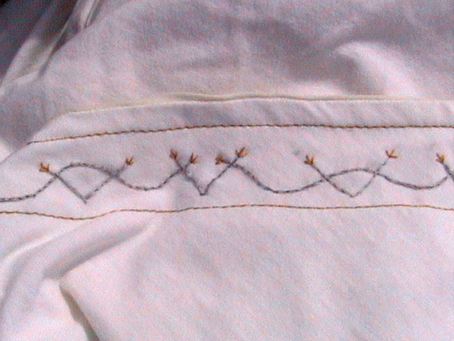 sleeve. The edges of the bells were then top-stitched with gold thread.