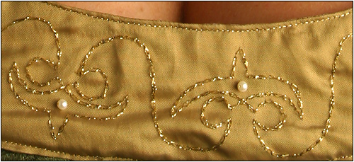hand embroideries in gold and with pearls (time consuming work, I tell