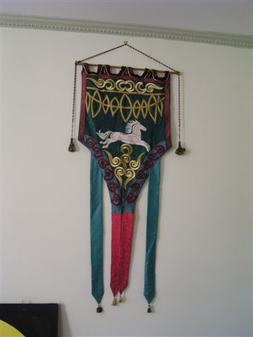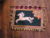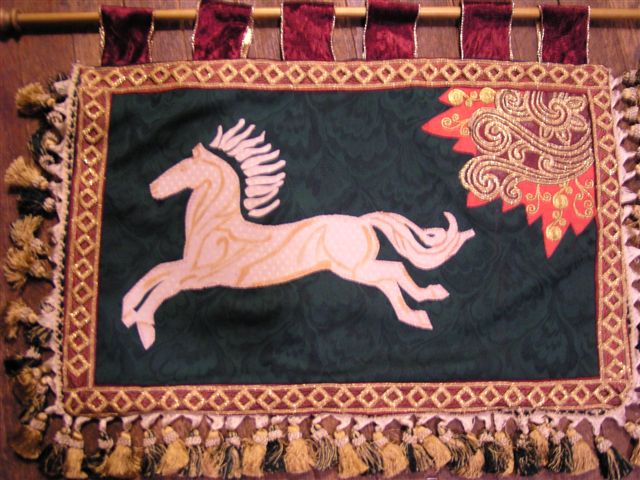 of the banner, sewed the wine braid on as a border, and overlaid that with