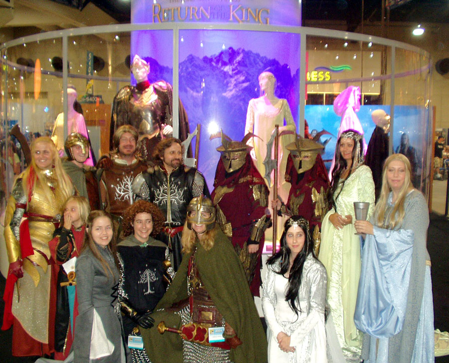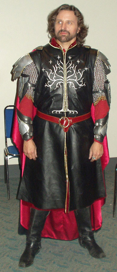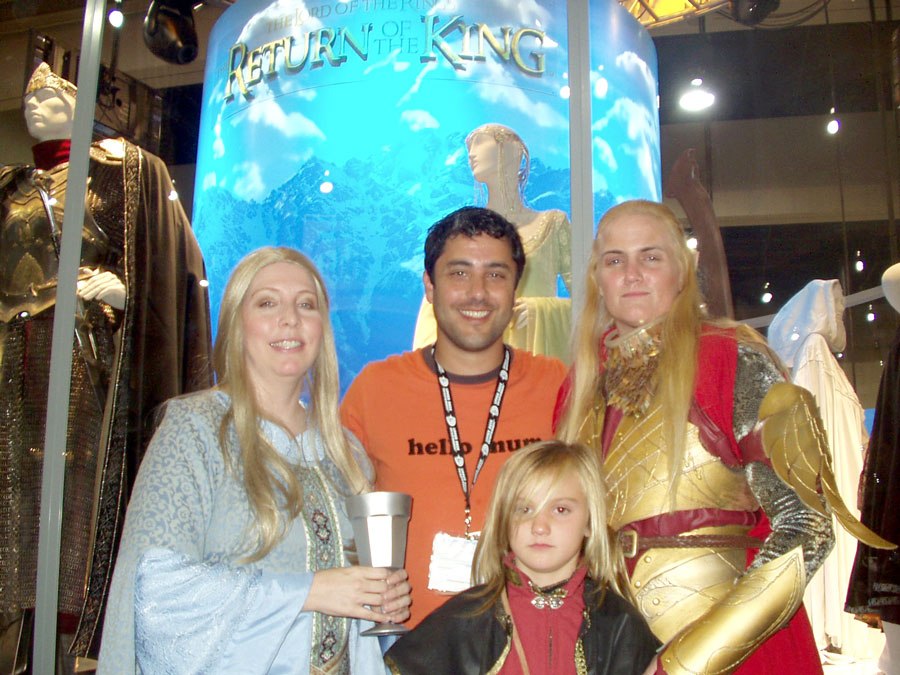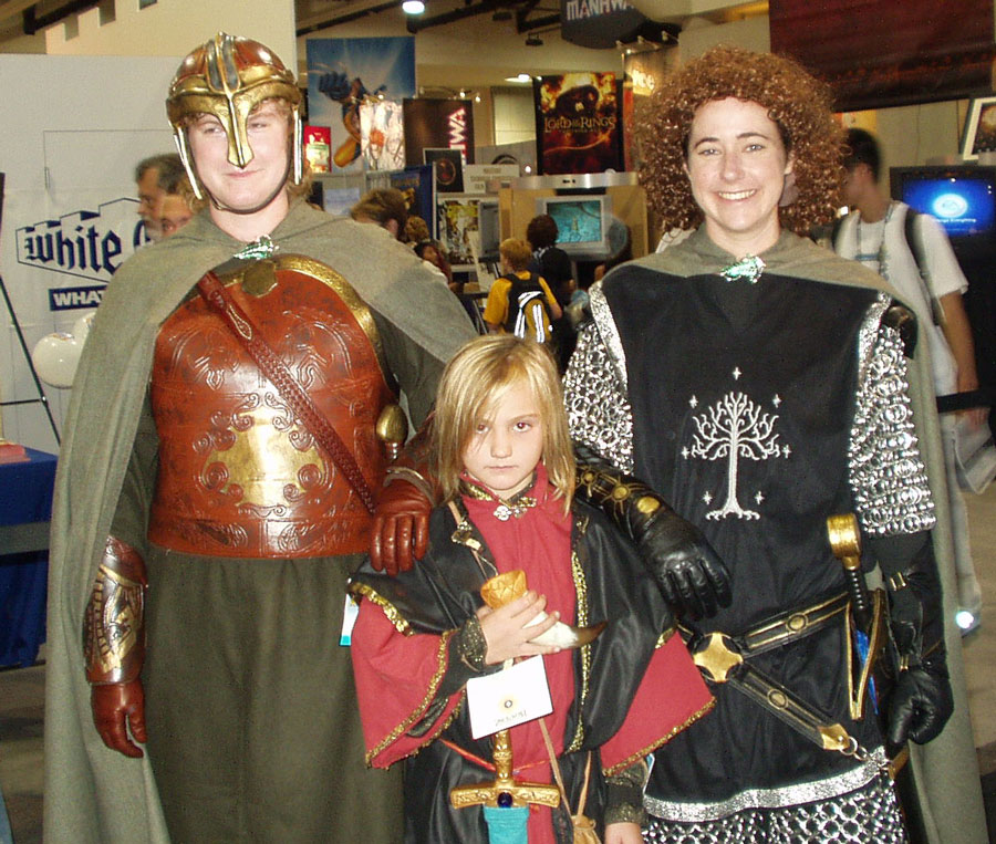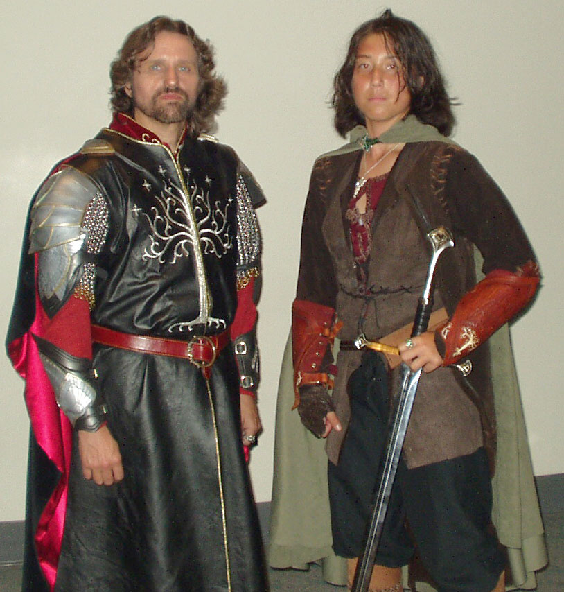 as Arwen Coronation, Jen as Legolas (kneeling), Kent as Aragorn,