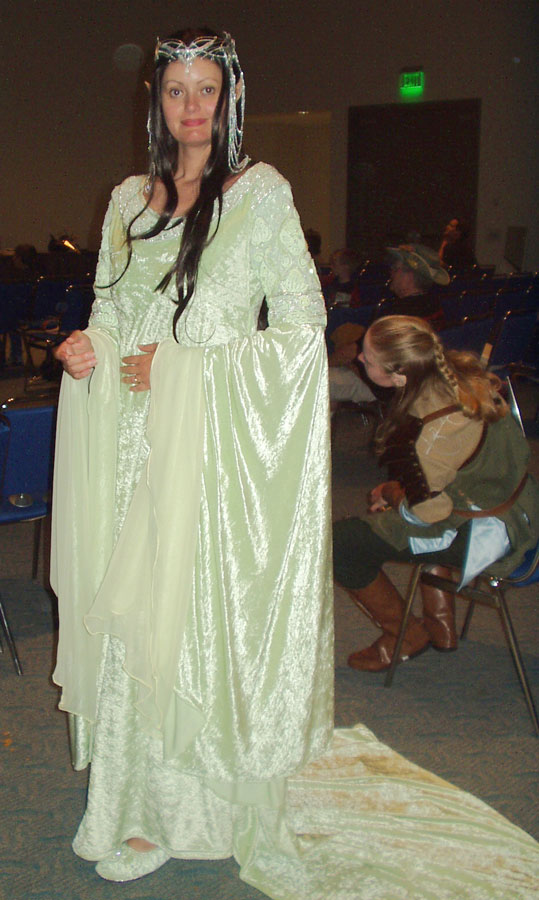 Arwen's wedding dress, and Caitlin in Arwen's Chase dress. |