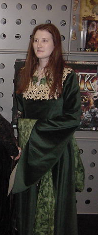 I modified the pattern by making the bodice and skirt separately, attaching them at the waist seam. I used the upper sleeve from the pattern, but drafted my own version from the elbow down. The belt was made from four inexpensive belts purchased in the LA garment district. I took them apart and reattached the sunbursts to each other.