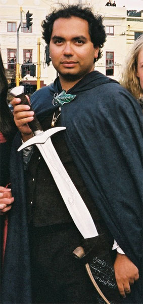 Jen G.'s Examples, Alberta Canada FrodoShirt – off-white cotton, bought as you see off the rack several years ago, I couldn’t believe how close it looks to Frodo’s shirt in general shape and fabric. Vest – no pattern, simply copied a vest known to fit, though I made the neckline higher. The fabric is actually supposed to be a pseudo-suede, even though I don’t think it’s a very good fake suede, I did think it was a very good stand-in for brown velveteen as it has a bit of a soft pile. It’s lined in muted cranberry polyester satin and accessorized with antique looking buttons. Pants – copied a pair of Jedi pants I had kicking around and