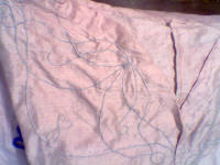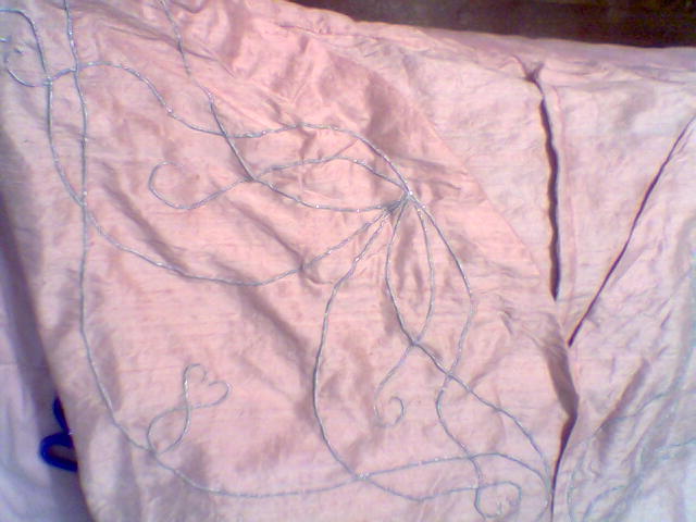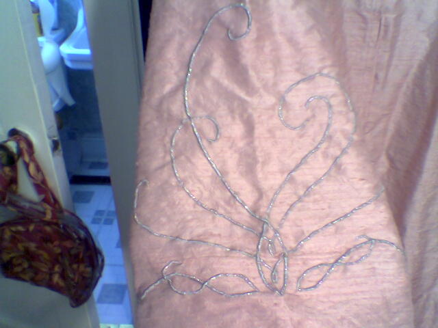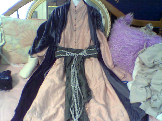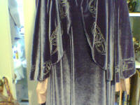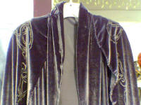 Then I started hand embroidering, I was at a speed o 1"=1 hr not so hot, so I decided to start on the drape, again lots of pictures, and back to Denver fabrics after I made a mock up based on simplicity 5329 (thanks to lots of help from Judy. thanks again Judy!) and wouldn't you know they were out of silk velvet in the charcoal color and I wasn't about to dye anything so I looked at the stretch velvet.