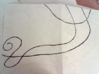Now came the challenge of the emb designs, I looked at the templates on ACS and printed them, I matched them up with the movie and made them as big as I needed them to be and used a dark graphite pencil and colored them in.