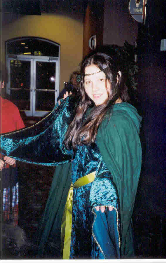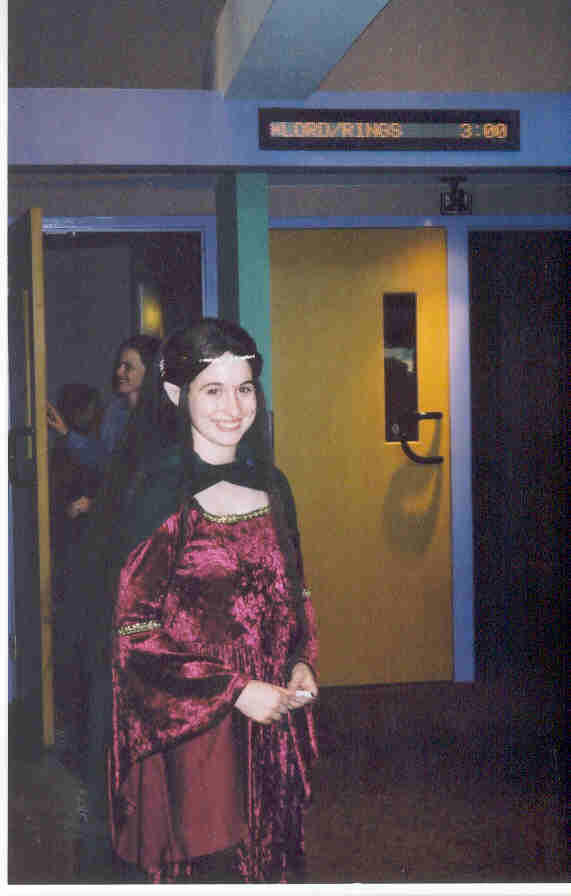These pictures were taken the night of the Midnight Premiere of Lord of the Rings/ The Two Towers. There was such a great crowd of fans, there were people, getting prepared by watching Lord of the Rings/ Fellowship of the Ring, on there portable DVD players, there were people Swing Dancing in the ailes. Clapping, and cheering, counting down the minutes! Considering, even though we were the only fans, that dressed up for the night, we had lots of attention! Like a girl, that leaped into our arms, and wanted to take a picture with us! It was a great night of enthusiasm, there were people