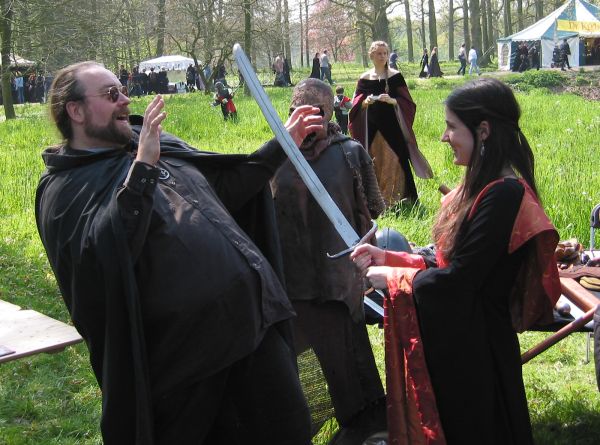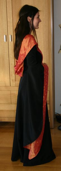Extra: Most of these pics are taken the first time I wore the dress, at the Elf Fantasy Fair (at a castle =D) in the Netherlands. I’ve got other dresses also, but they are made for a move I am making, and are not LotR-related, and not quite beautiful I think. Most of them is made from old clothes, and curtains. It’s in Dutch, to see the costumes, click on ‘foto’s’ in the left screen, or click on a name under ‘personages’ and then klick on ‘kostuum’ (I am Myrna there, and I think Elsin’s costume is the most beautiful)