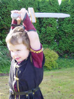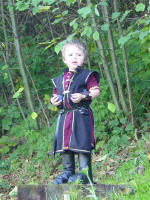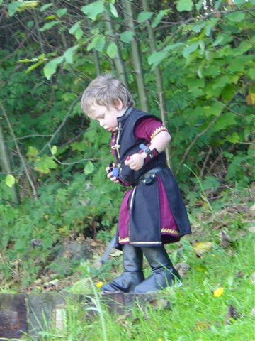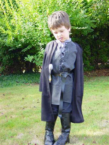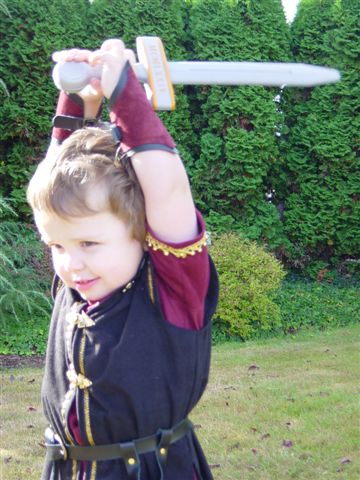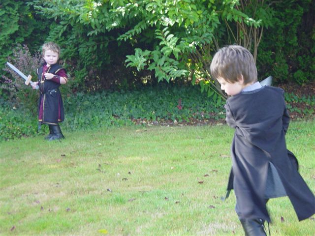 The swords are from Ikea and don't come with scabbards, so I made loops on their belts for them. They both have cloaks but they didn't keep them on long. It was better pictures without them.
