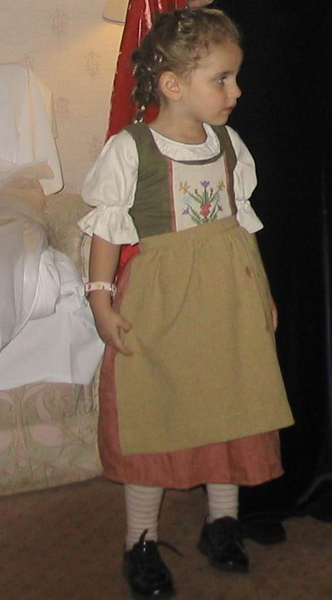 sleeves and lace for the hem. The dress consists of a bodice, which is