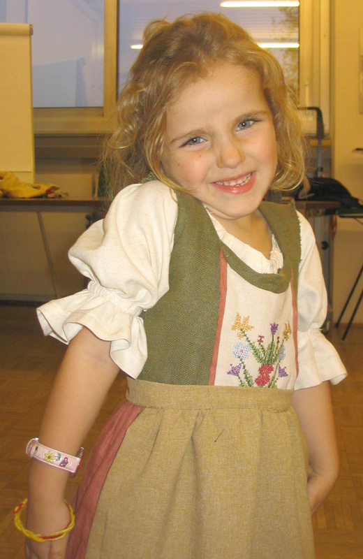 embroidered with many colours and a skirt which drapes beautiful. The apron