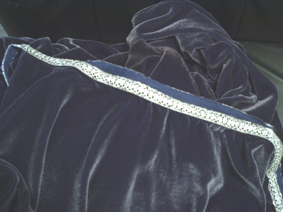blue/grey silk velvet (unlined) for the over gown and blue Chinese silk for