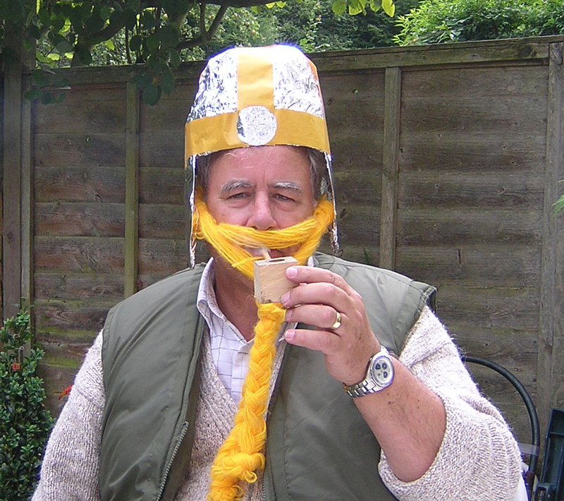 shirt and waistcoat. His beard etc., was made from wool and his helmet