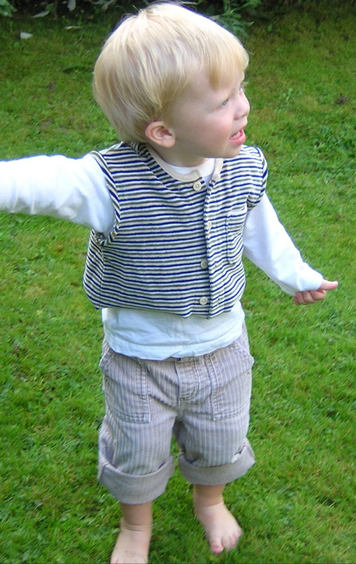 Jennifer, wearing cut-down baby clothes. Arthur’s waistcoat is a