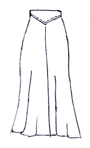 | Skirt is tight fitted at the waist with a yoke, flowing smoothly over the hips,