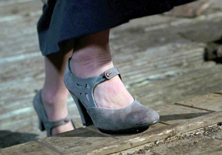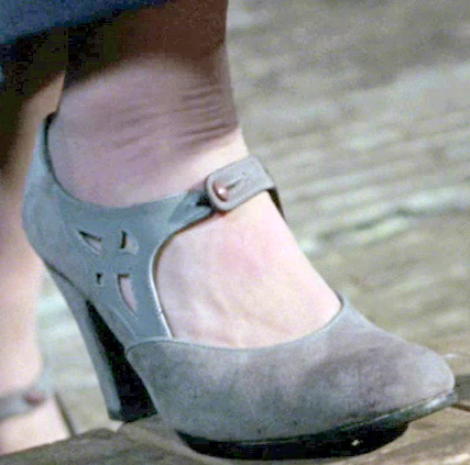 | Shoes are the same grey suede heels she wears though the NY scenes |