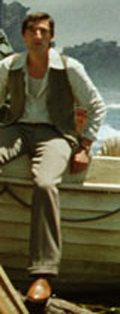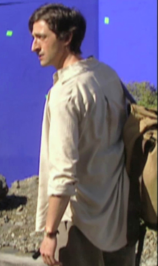 same outfit, but one or two more buttons are undone so that now his