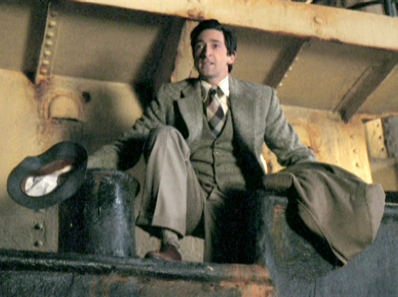 overcoat is a medium brown here. (The full outfit he's on ship