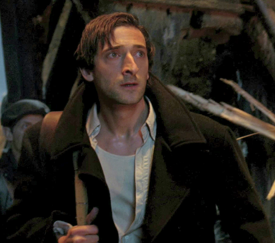 Coat he caries when trying to get off the ship is brown