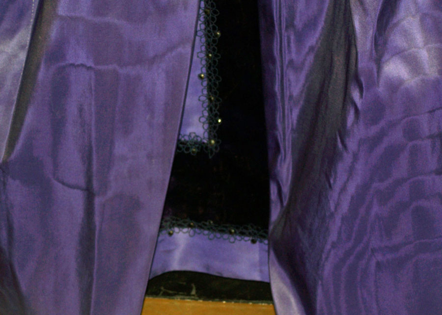 Purple silk moiré robe, growing in stature to unapproachable scale and