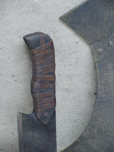 hilt was finished off with 2 pieces of wood glued and then carved to