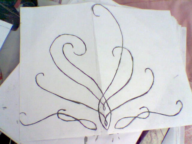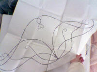 Now came the challenge of the emb designs, I looked at the templates on ACS and printed them, I matched them up with the movie and made them as big as I needed them to be and used a dark graphite pencil and colored them in.
