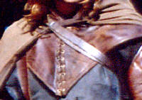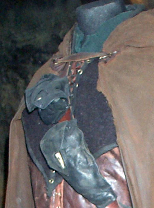 as closure with reinforced leather tabs on cloak. Braid cord ends with a
