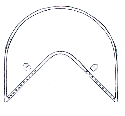 is shaped like a very flat 'V'. The leather edging is about 4-5 cm