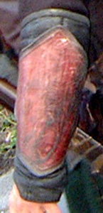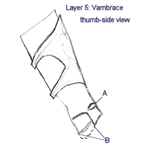Vambrace thumb-sided view A: Hole for thumb
