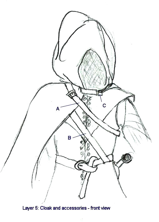 Cloak and accessories front view