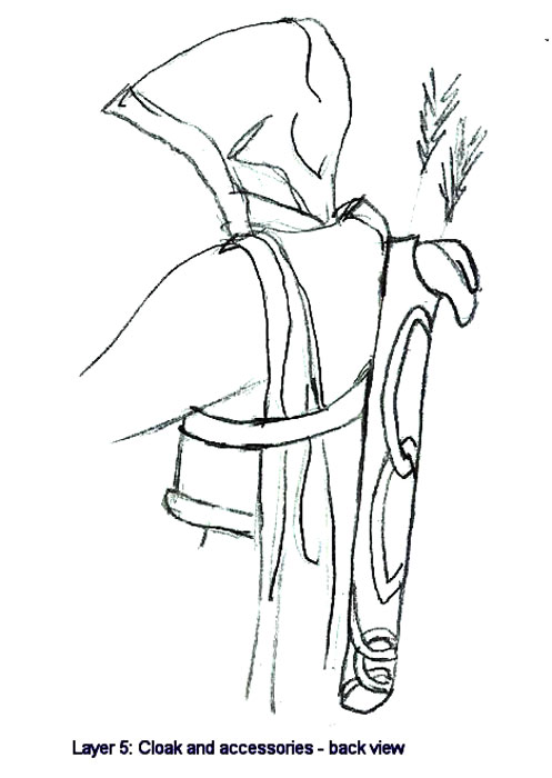 over the quiver holds the cloak in place so as not to interfere with the bow
