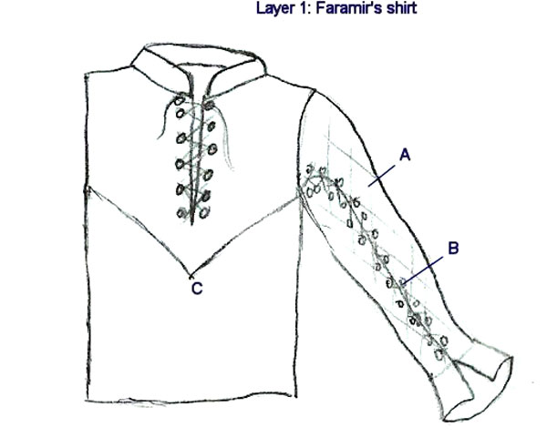 the sleeves are made under the arm as Faramir reaches behind to fetch an arrow
