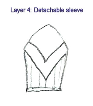 Top edge of the sleeve attaches to yoke of vest by two buttons. They are laced underneath. (You can clearly see how