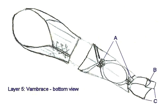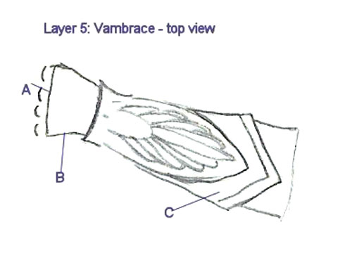 Vambrace bottom view A: Upper layer buckled