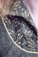 For the pattern on the yoke, I used a gold bullion thread, digitized an