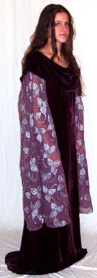 Materials: Silk Velvet Overgown with etched sleeve details, Polyester