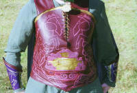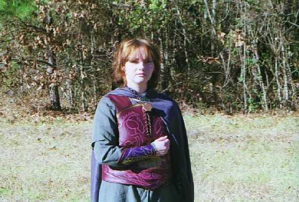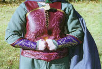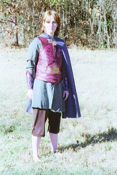 Meridoc "Master Holdwyne" Brandybuck: Knight of the RiddermarkI made and wore this costume for the midnight showing of ROTK. I'm actually pretty proud of it, considering that I had...what...three or four pictures to work off of? And none that were very clear. I spent about six or seven months on this...most of which was spent on research, sketching, planning, and drafting my pattern. The actual construction and painting only took about a month. There are "technically" four/five layers to this costume.