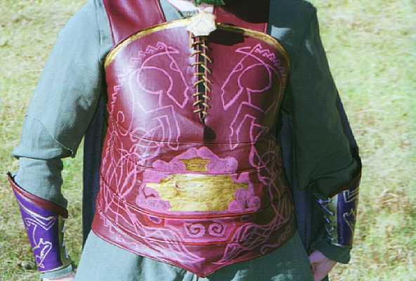 My "broach" on the armour, is of foamboard painted gold, with black paint pen for the horse design. (similar to vambraces) The Lorien leaf broach is one that was purchased from The Noble Collection, so don't give me credit for that! =) There are a few things on this costume I want to fix up and fine tune a bit...like the fact that I don't have a baldric. So I'll have to update when I get version two finished.